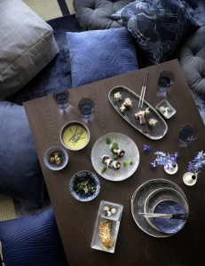 Idén om Åhléns som värd och bjudande förstärks genom den mat som visas i reklamfilmen. Bland det första tittaren möts av är mat sparsamt upplagt på blåmönstrade fat och i skålar. Det är sushi och soppa, sådant som Väst är säkra på att japaner äter. Trots sin sparsamhet ger maten ett generöst intryck. Värden Åhléns bjuder inte bara på en härlig exotisk men elegant miljö – de vill också locka smaklökarna att vara med. Alla sinnen ska väckas, allt för att sälja.