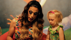 Vi sitter på golvet i ett rum på ett bibliotek i Stockholm. Det är jag, mitt barn och cirka 15 andra personer, barn och vuxna. Alla väntar på att sagostunden Bland drakar och dragqueens ska börja. Det är en bokstund som leds av en dragqueen, denna gång vid namn Carnita Molida.