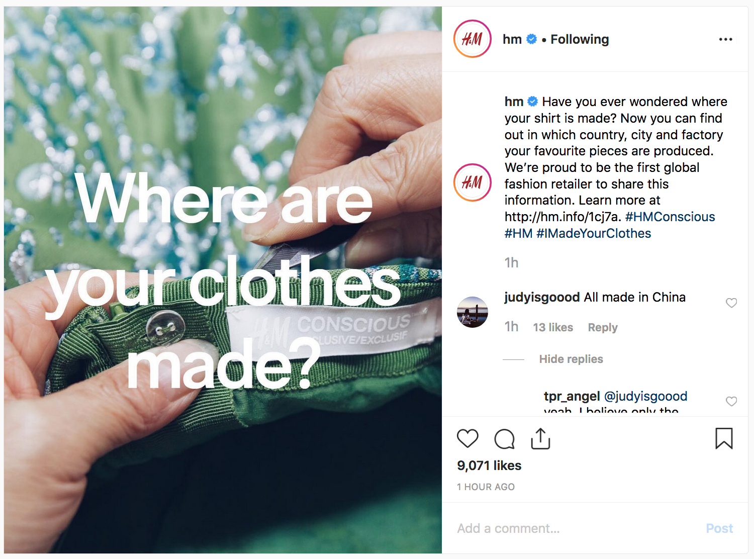 These companies are tricking people with their communication. Let’s give more voices to the workers, let’s take our responsibilities and let’s keep awareness of the workers suffering instead of buying the next trendy tee.