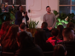 — Alla är välkomna att sitta med oss under tiden vi har öppet, det är från klockan 9.00 till klockan 17.00. Sen är vem som helst välkommen att göra projekt eller utställningar tillsammans med oss. Vi har avsatta datum för varje aktivitet. Vi jobbar jättemycket med låga trösklar, för att inkludera flera. Vi tror någonstans på att demokratisera framgång, oavsett om du vill göra din förälder lycklig eller om du vill bli ekonomiskt framgångsrik. Jag coachar även ungdomar som del av verksamheten.